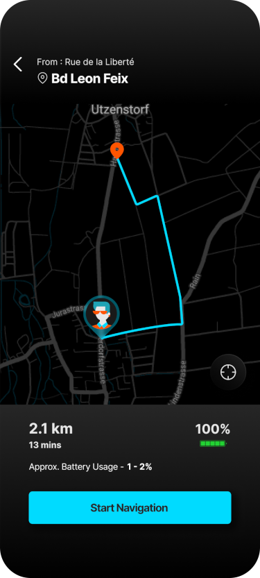 The client required an app that must be perfect in UI and also covers all the functionality like routing, BLE calling in iPhone, location tracing, optimised battery consumption, low memory consumption, should sync with the cloud server for the data, implement lost mode feature for the cycle.